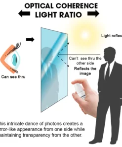Optische Kohärenz: Der Schlüssel zu unserer Einwegspiegeltechnologie liegt in der optischen Kohärenz. Wenn Lichtphotonen mit der beschichteten Oberfläche interagieren, durchlaufen sie einen komplexen Interferenz- und Reflexionsprozess. Dieser komplizierte Tanz der Photonen erzeugt auf der einen Seite ein spiegelähnliches Erscheinungsbild, während auf der anderen Seite die Transparenz erhalten bleibt.