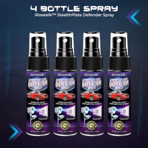 El iRosesilk™ StealthPlate Defender Spray es un recubrimiento especializado que se aplica a las placas de los vehículos. Una vez rociado, forma una capa protectora diseñada para reflejar y difundir las fotografías con flash de las cámaras de tráfico. Este efecto de reflexión y difusión hace que los números de matrícula sean difíciles de capturar y leer con cámaras, especialmente aquellas que utilizan tecnología de flash. Esto ayuda a reducir las posibilidades de que el vehículo sea identificado en las imágenes de las cámaras de velocidad o de semáforo en rojo, lo que ayuda a evitar multas de tráfico asociadas con estas detecciones.