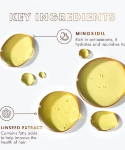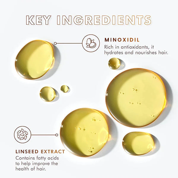 Minoxidil is a topical medication for hair loss. and is an FDA-approved ingredient that is safe to use. This aims to dilate blood vessels and improve the flow of blood to the areas it’s applied, this improves their ability to deliver nutrients and oxygen to the hair follicles. Minoxidil also helps increase the size of hair follicles, which promotes the growth of thicker, stronger hairs.
