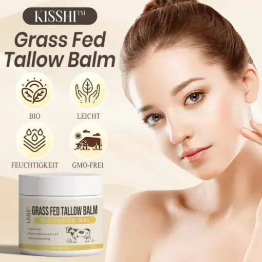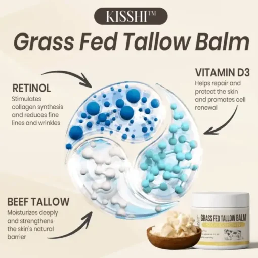 KISSHI™ Grass Fed Tallow Balm uses high-quality ingredients to maximize its benefits by locking in moisture, stimulating collagen production, smoothing wrinkles, and repairing damage.