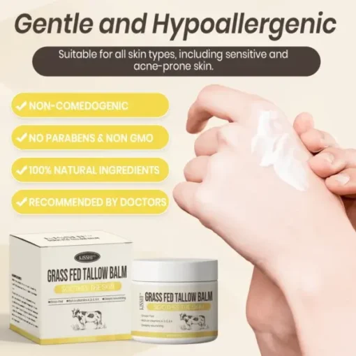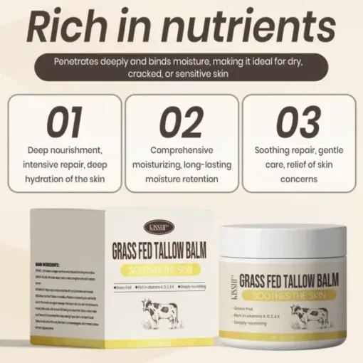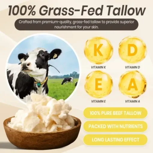 - Single Ingredient Formula : Made solely from beef tallow, rich in nutrients and containing vitamins A, D, E, and K, providing the natural nourishment your skin needs.