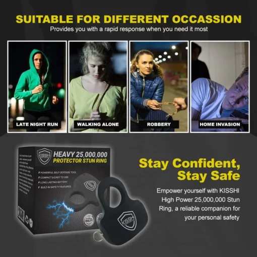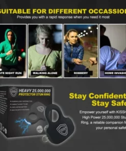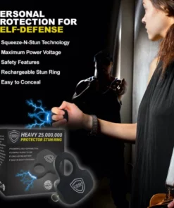 This ring has a more impressive punch than most of the bigger stun gxns do. It unleashes 25,000,000 volts of electricity and it can be activated easily with a simple squeeze due to the innovative Squeeze-N-Stun Technology. - SMALL BUT POWERFUL