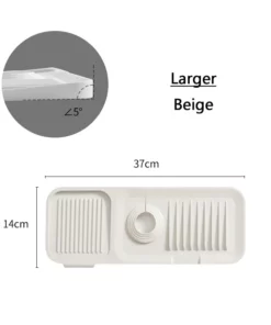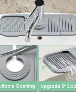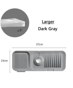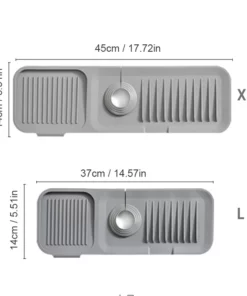 ćUnique and Multifunctional DesignćNew upgraded design with built-in bevel to improve drainage to the sink. Our kitchen sink splash guard has a designated small soap drip tray on both sides that can be used as a holder for sponges, soaps, and soap dispensers. 2 Mat sizes for you to choose from. “XL: 17.7 x 5.5 inches (L x W)” / “L: 14.6 x 5.5 inches (L x W)”