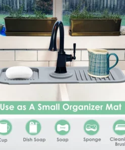 ćEasy to Clean and Easy to StorećThe silicone faucet anti-drip mat is not as hard to wash and dry as fabric cloth, you can wash it by hand or put it in the dishwasher, it will dry in minutes, you can roll it up when not in use, easy to store and save space.