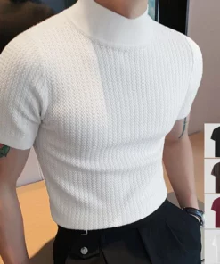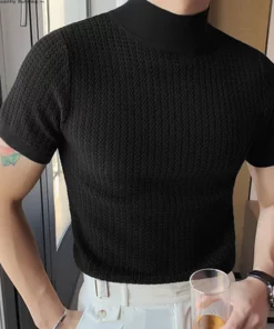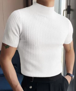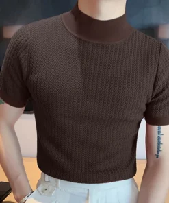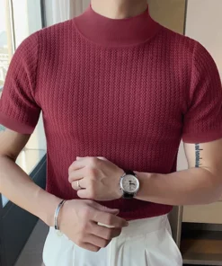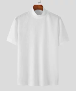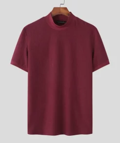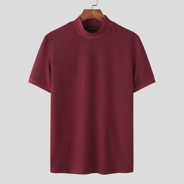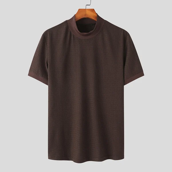 Knit High Neck Solid Color T-Shirt