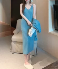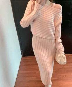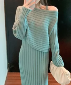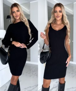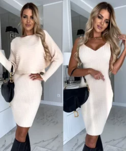 Say goodbye to your cold weather fashion worries and hello to our Knit Sweater and Cami Dress Set! This set consists of a dress with a matching sweater. The Set absolutely satisfies your need for warmth and fashion in one delightful package.
