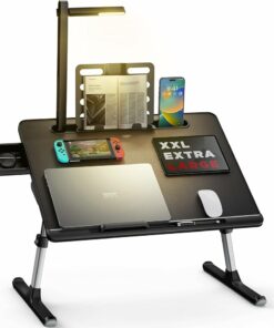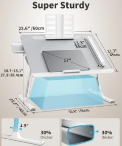 [XXL EXTRA LARGE]: The 23.6″ x 17.7″ extra large laptop lap desk will fit all you need. keep your laptop, textbook, mouse, and smartphone all within easy reach. It’s wide enough to be comfortable working on a couch, on a bed, standing at a table, or even on the floor. the legs are 30-percent thicker than most bed desk legs for extra stability. At the same time, it has enough leg room to cross your legs. supports up to 88 lb load bearing.
