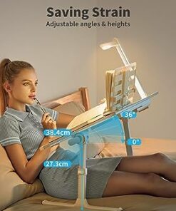 [ADJUSTABLE LAPTOP TABLE]: The adjustable angles and heights allow you to customize the tray to be ergonomically friendly, saving strain on your eyes, back and neck., Two auto-lock buttons on each side can make the quick change in height easily, Table legs can be set to 5 different heights (adjustable from 10.6″ – 15.4″). two clamps can be used to adjust the surface angle, surface can be set to 4 different angles (from 0°-36°).