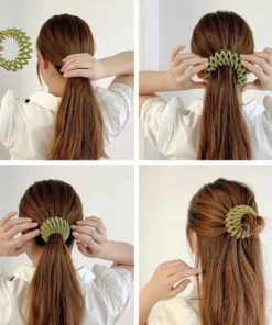 Bird’s Nest Plate Hairpin is a bendable hair tool that holds hair up stylishly all day long. Just clamp your hair with the bun maker, roll up and bend it into a perfect bun in seconds!