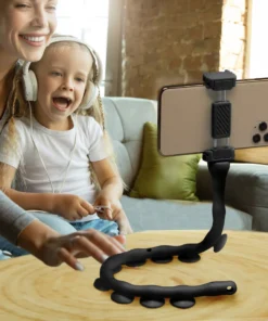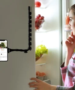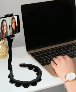 Go hands-free with this compact and adjustable phone holder. With a silicone body and ten suction cups.Set your phone up anywhere and everywhere!