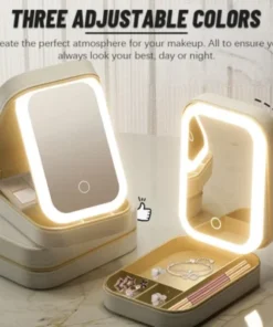 Upgrade your makeup and jewelry storage with our large-capacity LED tri-color adjustable vanity mirror jewelry box. With its versatile design, customizable lighting, and secure storage, it’s the perfect accessory to keep your beauty essentials organized and easily accessible. Order now and take your beauty routine to the next level! 💄🔆