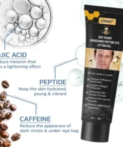 LENARO™ Bee Venom Awakening Peptide Eye Lifting Gel uses high-quality ingredients to maximize efficacy by locking in moisture, stimulating collagen production, smoothing wrinkles, and repairing damage.