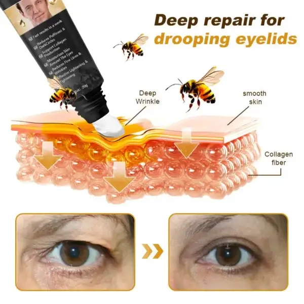 LENARO™ Bee Venom Awakening Peptide Eye Lifting Gel combines cutting-edge technology with unique ingredients to specifically target and deeply repair drooping eyelids. Unlike typical products on the market, LENARO™ not only stimulates collagen production to enhance the elasticity of the delicate skin around the eyes but also utilizes bee venom peptides to accurately mimic the effects of Botox. This relaxes the muscles around the eyes and lifts sagging eyelids. The unique formula penetrates deep into the skin, promotes blood circulation, and, together with hyaluronic acid’s deep moisturizing effects, makes the skin around your eyes plump and full. This effectively reduces drooping eyelids, giving your eyes a youthful, firm appearance. Choose LENARO™ to experience true skincare innovation and completely say goodbye to drooping eyelids.