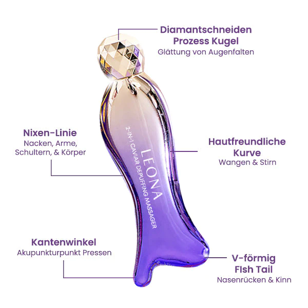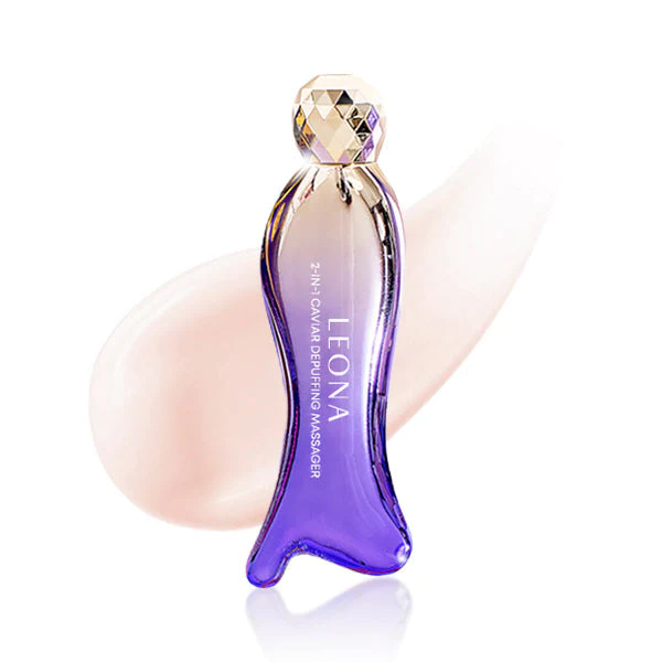 LEONA 2in1Kaviar Abschwellendes Augenmassagegerät, der die Vorteile eines Gua Sha-Werkzeugs und der Hautpflege in sich vereint. Dieses einzigartige Gerät hilft, Schwellungen, dunkle Ringe und feine Linien um die Augen zu reduzieren und fördert gleichzeitig die Lymphdrainage und die Durchblutung. Mit Leona können Sie ein luxuriöses und effektives Hautpflegeerlebnis genießen, bei dem Sie sich wohl fühlen und gut aussehen.