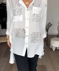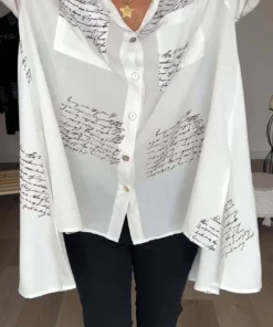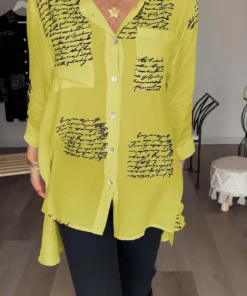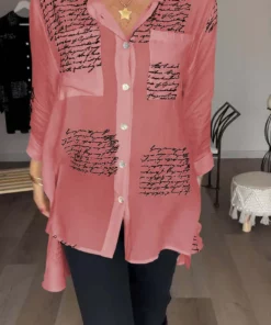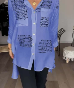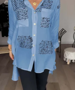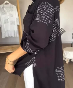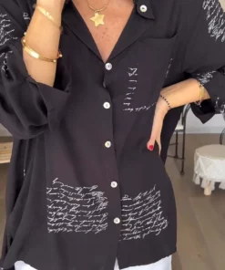 The unique letter print design adds a touch of individuality and trendiness, making it a standout piece in any ensemble. The lapel collar and tailored cut exude an air of elegance, while the loose fit ensures unrestricted movement and a flattering silhouette.