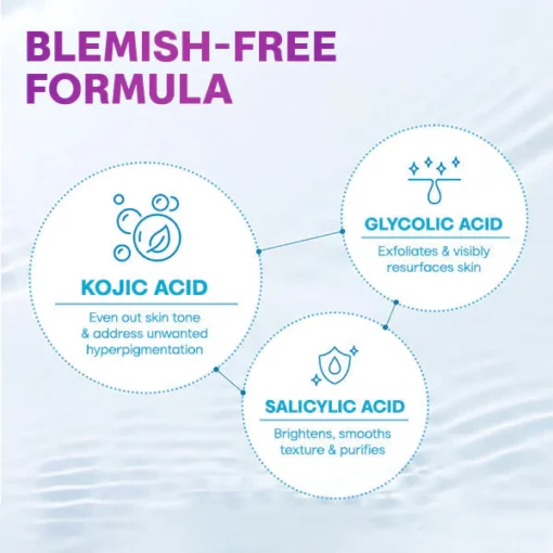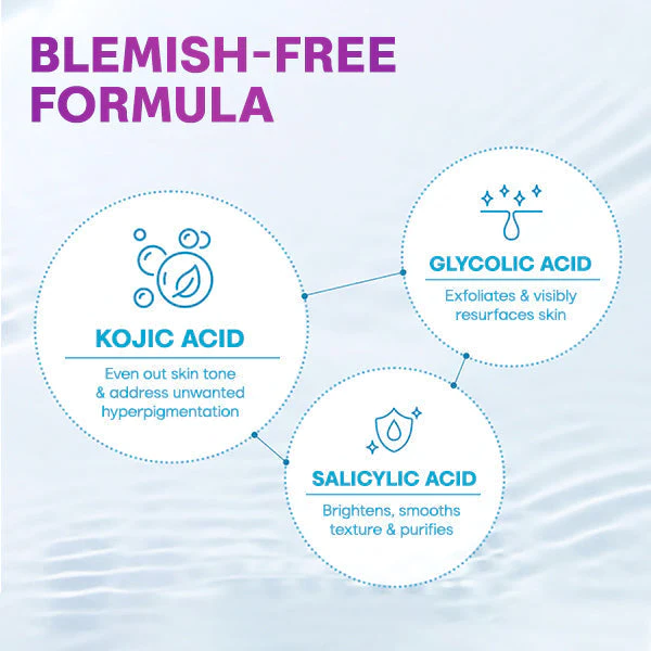 Kojiczuur: remt de productie van melanine, het pigment dat verantwoordelijk is voor huidverkleuring. Door de melaninesynthese te verminderen, helpt kojiczuur donkere vlekken, hyperpigmentatie en een ongelijkmatige teint te vervagen, wat leidt tot een helderdere en gelijkmatigere teint.