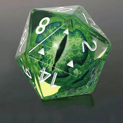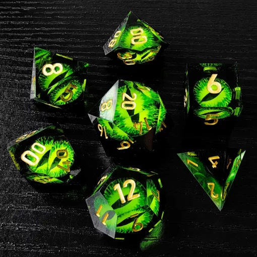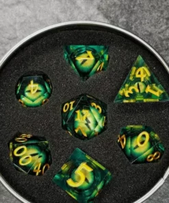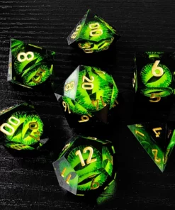 The Green Dragon Eye Dice Set is the talk of any table. With every roll, the internal eye gazes upwards at the number you’re scrolling!