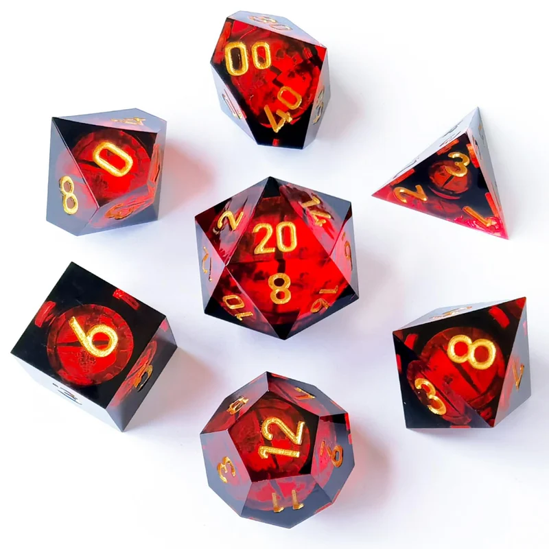 These dice feature sharp edges and are made for TTRPGs. They make a great dice set for any collector. Makes a great gift for a friend, fellow player, or dungeon master. These are super unique!
