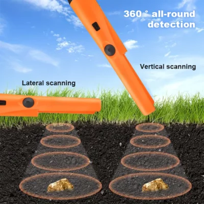 The detection area covers all angles, allowing you to scan your surroundings completely. No need to worry about missing metals hiding in tricky spots. Whether it’s in the sand, soil, or grass, the 360° detection ensures a thorough sweep, making your treasure hunting more efficient.