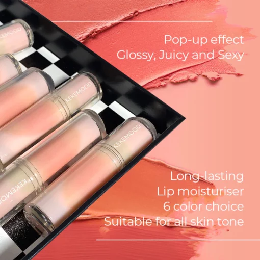 With 6 amazing color choices (01 Light Peach, 02 Ebony Brown, 03 Liuguang Tea, 04 Rose Dust, 05 Bloody Jade, 06 Popberry), there is always a juicy shade for every mood and occasion. Whether you have fair or olive skin tone, the KEKEMOOD™ Lip-Pop Juicy Lipstick has the perfect shade that matches the natural color of your skin.