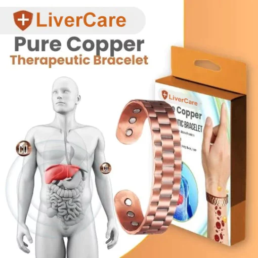 LiverCare™ Pure Copper Therapeutic Bracelet is made from high-quality copper and is designed to be worn on the wrist for maximum effectiveness. The bracelet works by releasing small amounts of copper ions into the body, which can help promote healthy liver function and support overall health.