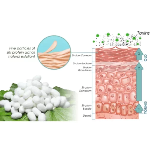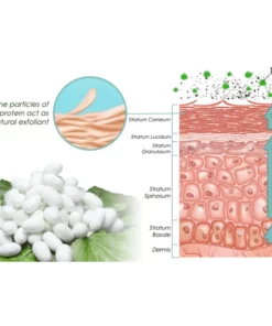 Hydrolyzed silk protein, a powerful skincare ingredient derived from silk fibers, offers multiple benefits for achieving a radiant and even complexion. Silk provides a gentle exfoliation, effectively eliminating dead skin cells to reveal smoother and brighter skin. Additionally, hydrolyzed silk protein further enhance the skin’s texture, creating a more even appearance and potentially diminishing pigmentation irregularities. Plus, silk protein possesses light-reflecting properties, capable of creating an optical illusion that enhances brightness and radiance.