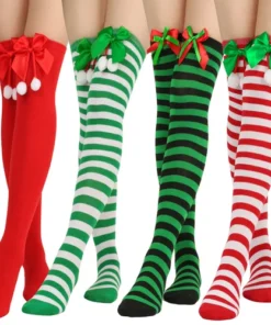Material: made of quality cotton, good elastic can be adjusted the length over the knee easily, soft and comfortable Christmas knee socks that do not hurt your skin