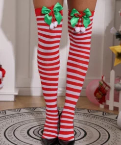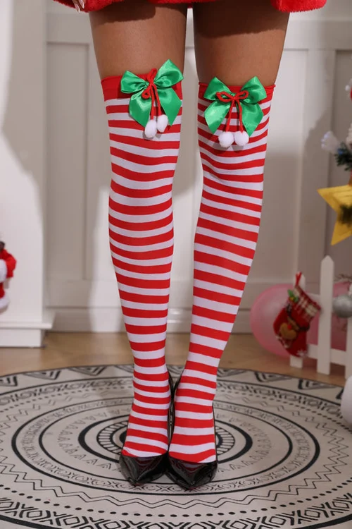 Long Striped Socks Over Knee Thigh High Stockings For Christmas