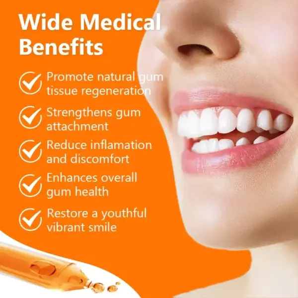 Strengthening Gum Attachment: By promoting cellular regeneration and collagen production, the gel helps restore the proper gum attachment, preventing further gum recession and enhancing overall gum health.