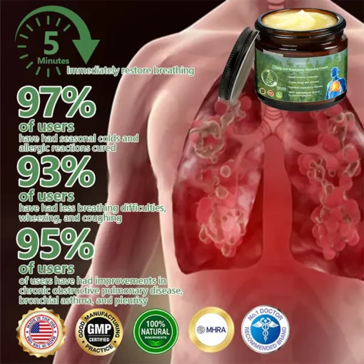 【Professional】Organic Lung Cleansing & Repairing Cream – Cleanse trachea and lung residues – Repair alveoli – Regenerate tracheal tissue – Fight allergies/asthma – Regain the feeling of unobstructed breathing – Help with COPD