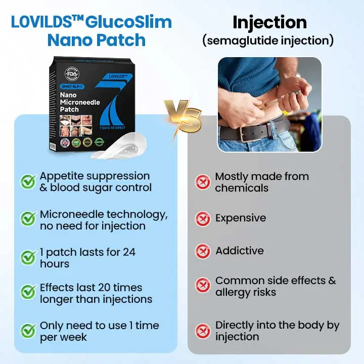 Powered by advanced nano microneedle transdermal technology, the LOVILDS® GlucoSlim Nano Patch delivers active ingredients deep beneath the skin to effectively support metabolic health. It works by helping regulate insulin secretion, suppress glucagon release, and slow gastric emptying—promoting appetite control, blood sugar balance, and fat metabolism. At the same time, SMGT-GLP-1 boosts skin regeneration and firmness, helping users achieve a slimmer shape and visibly smoother, more toned skin throughout their wellness journey.