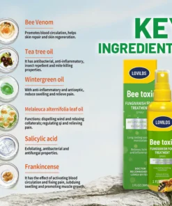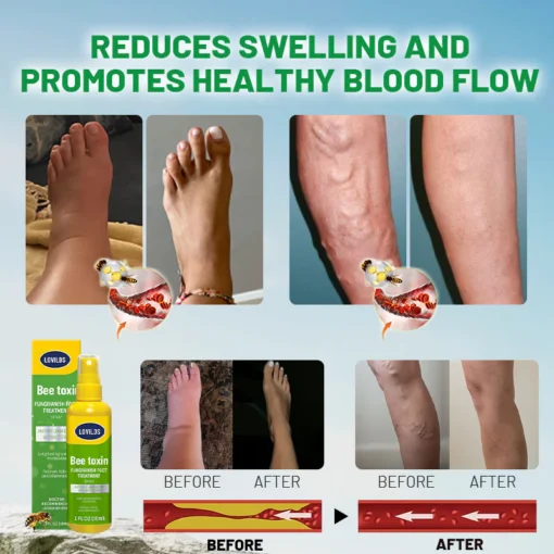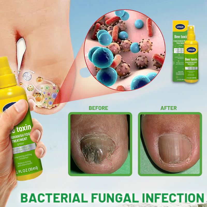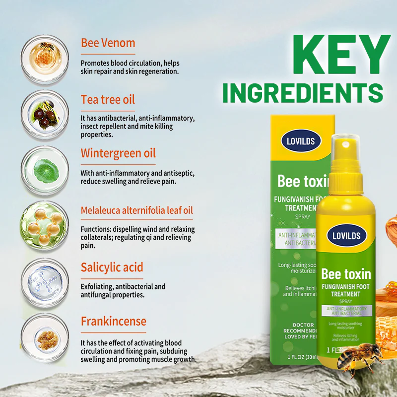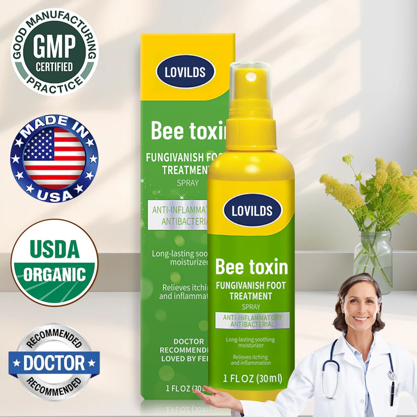 Looking for the ultimate solution for foot problems like fungal infections, nail fungus, athlete’s foot, swelling, or ulcers? Discover LOVILDS⢠Royal Jelly MushroomVanish Foot Treatment Spray! With its powerful blend of natural ingredients, including bee venom and Royal Jelly, this spray promotes healing, reduces inflammation, and improves circulation for healthier, more comfortable feet in just a few weeks.