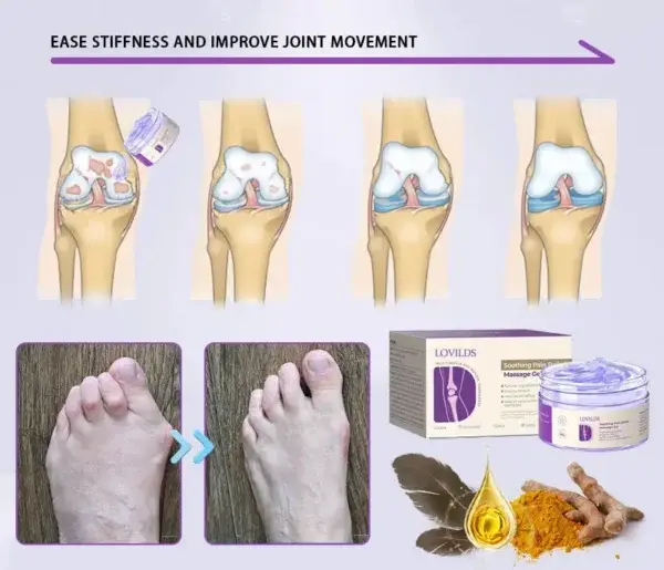“I suffer from advanced gout in my feet, which caused severe swelling and unbearable pain in my toes. The stiffness made it difficult to walk, and I even considered surgery, but the high cost led me to explore other treatment options. I consulted my orthopedic surgeon, who recommended LOVILDS™ Turmeric & Emu Oil Arthritis Soothing Pain Relief Massage Gel. After using it for just one week, the swelling in my joints began to reduce, and my toes became more flexible. After two months of continued use, my feet have fully recovered – it’s amazing! I’ll keep buying this product to ensure the gout doesn’t return!” – Jack Wilson
