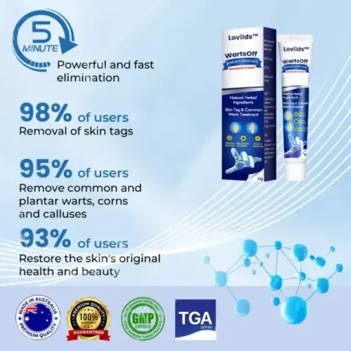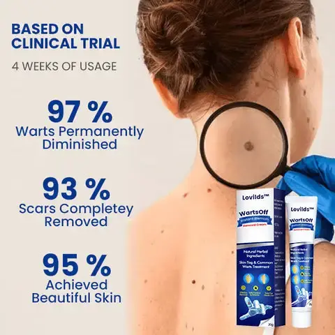 Lovilds™ WartsOff Instant Blemish Removal Cream quickly removes skin tags, moles, and dark spots, leaving smooth, clear skin without scars.