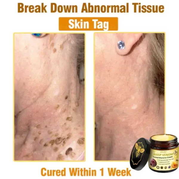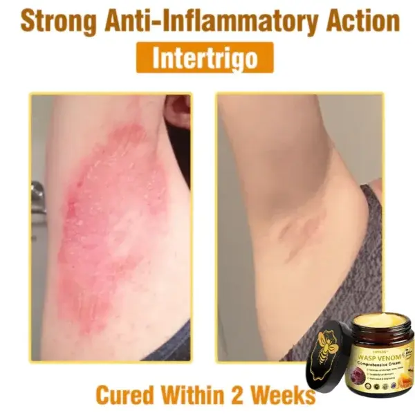 The Wasp venom Comprehensive Cream is a potent remedy for addressing various skin issues, owing to its unique blend of bioactive compounds from Wasp venom. With proven anti-inflammatory, antibacterial properties, and powerful enzymes, it effectively tackles different skin problems.