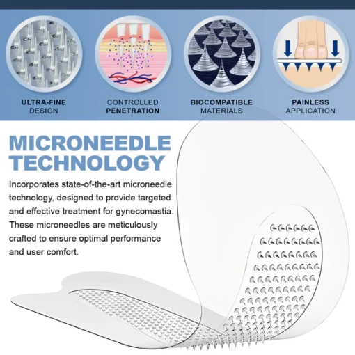 - Apply the patch: Press the patch gently onto the targeted area of your chest with gynecomastia. The painless micro needles will penetrate the skin upon application, delivering the ingredients precisely.