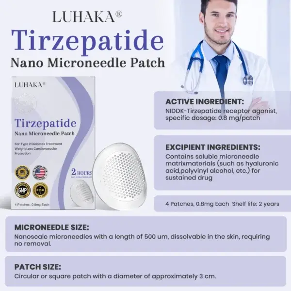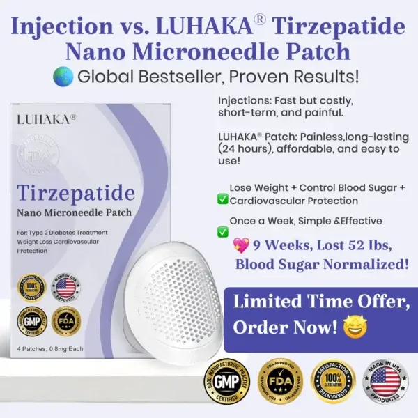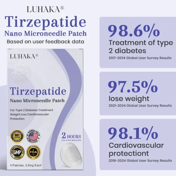 The Luhaka® NIDDK-Tirzepatide Nano Microneedle Patch helps you lose weight and control blood sugar easily, without pain, by slowly releasing medicine through your skin.