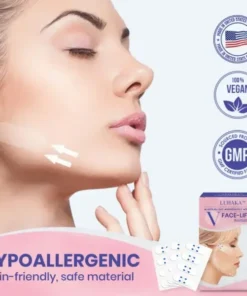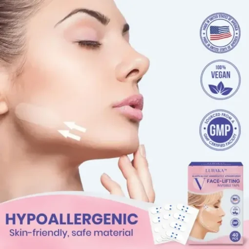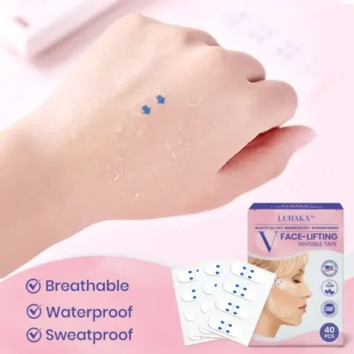 The Luhaka™ V-Face Lifting Invisible Adhesive Tape offers an instant solution for a face-lifting effect, eliminating the need for surgical procedures. Our product is designed to adhere gently to the sides of your face, lifting and pulling your skin upwards and backwards, creating a more V-shaped appearance, all while being gentle on the skin.