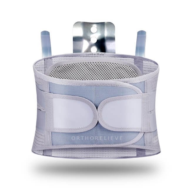 A: LumbarMate has a steel plate for support. The plate is curved to follow the spinal curve. As you wear it, the plate pushes against your spine, keeping you straight. This posture reduces pain caused by pinched nerves. It also includes a self-heating pad to help reduce inflammation and improve blood circulation.