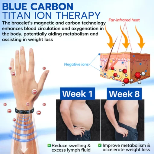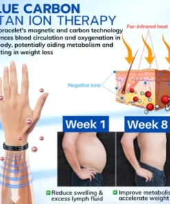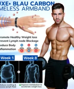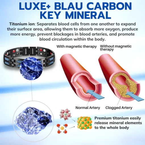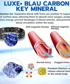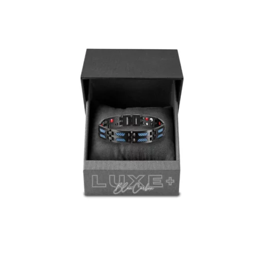The LUXE+ Blau Carbon Timeless Armband is a sophisticated wrist accessory that improves health and well-being. Constructed using carbon fiber and TitanION materials, this armband is designed to boost energy levels, reduce inflammation, and enhance overall physical performance. Additionally, it integrates a unique magnetic technology believed to stimulate blood circulation and increase oxygen flow throughout the body. This effect is attributed to TitanION’s potential to eliminate cellular fat and slow the production of fat cells and tissues.