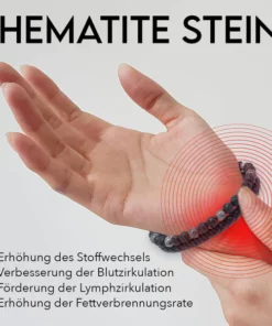 Die Armbänder bestehen aus Hämatit- und Blizzard-Steinen und haben die Eigenschaft, negative und positive Ionen freizusetzen, die den Fluss unseres Blut- und Lymphsystems regulieren können.