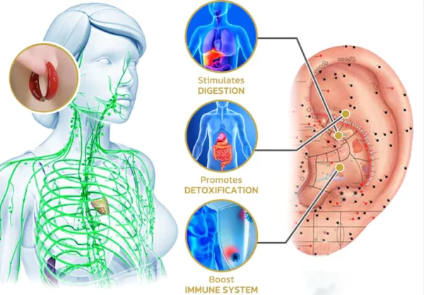 The Lymphvity Germanium Earrings offer a natural detoxification solution and contribute to the improvement of blood circulation. Ear acupuncture points support weight loss through various mechanisms, such as regulating hormone production, enhancing metabolism, improving digestion, reducing inflammation, curbing appetite, minimizing water retention, and optimizing other bodily functions associated with obesity and weight loss