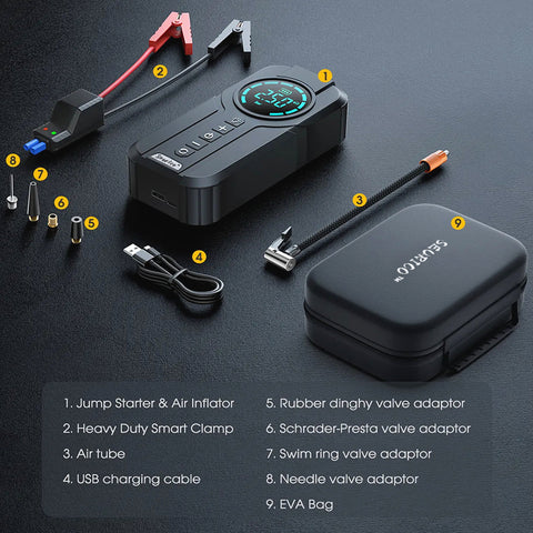 Package includes: 1 x Lyseemin™ Smart Multipurpose Air Compressor – Jump Starters – Battery Charging Systems