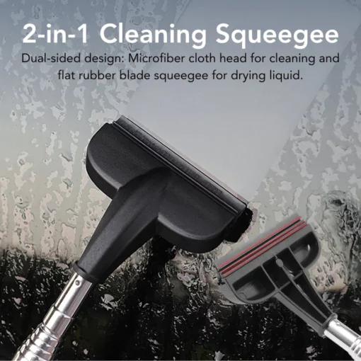 2-in-1 Cleaning Squeegee: Features a dual-sided design with a microfiber cloth head for cleaning and a flat, smooth rubber blade squeegee for drying off liquid. This eliminates the need for multiple tools during the cleaning process.