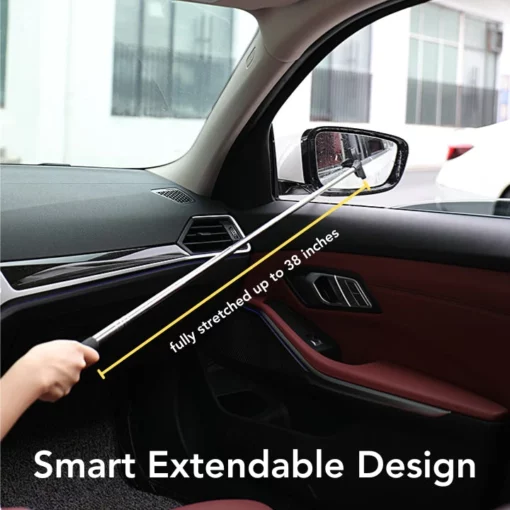 Telescopic Style: Smart extendable design that can be stretched up to an impressive 38 inches, allowing convenient cleaning of car mirrors and windows without leaving the driver or passenger seat.