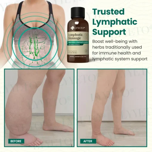 Lyyeto® isn’t just another supplement, it’s a liquid herbal extract that taps into centuries-old wisdom about lymphatic health. Our unique formula combines powerful botanicals traditionally used to support lymphatic drainage, reduce fluid retention, and restore that light, comfortable feeling in your body.