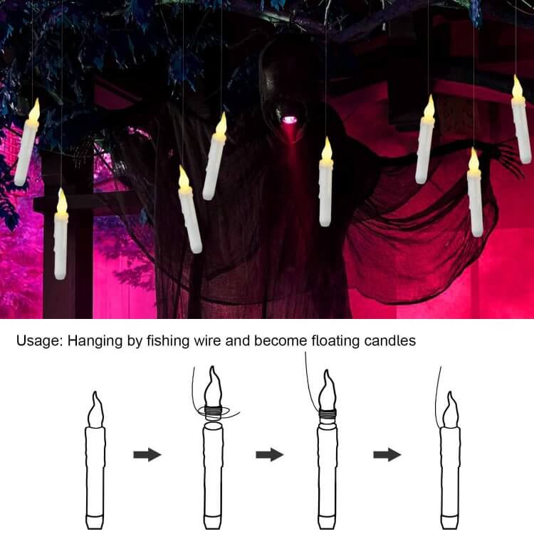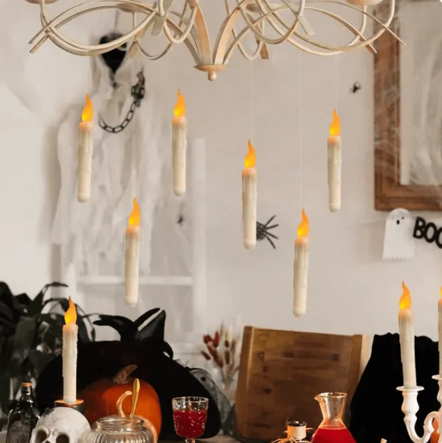 These floating candles extend their allure beyond Halloween night. Their timeless design and elegant presence effortlessly blend with any interior decor. Whether gracing your mantel, dining table, or bedroom, they infuse a sense of mystique into your space throughout Halloween.