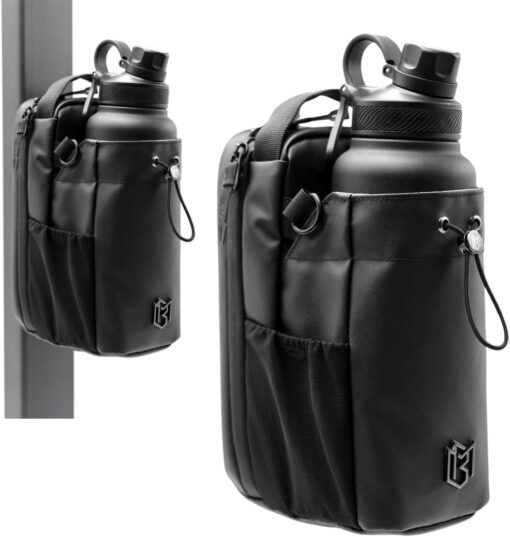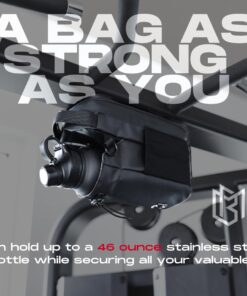 Whether you’re carrying a massive water jug or a standard bottle, this magnetic water bottle holder for gym accommodates up to 70 oz. It even doubles as a motorcycle tank bag for added functionality during your active lifestyle.