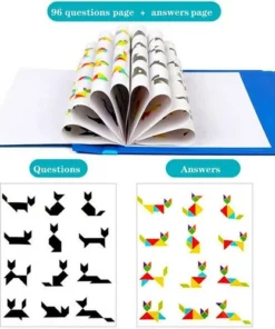 How to play—There are 96 questions/shapes(Black side) and 96 answers(color side) with different difficulty levels waiting for you.Really fun and useful for brain development.The puzzle is composed of the animal, people, object, boat and geometric figure.