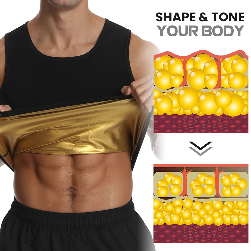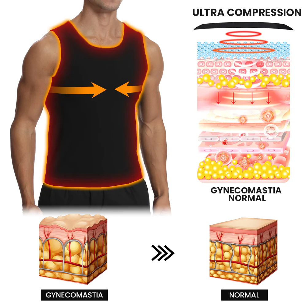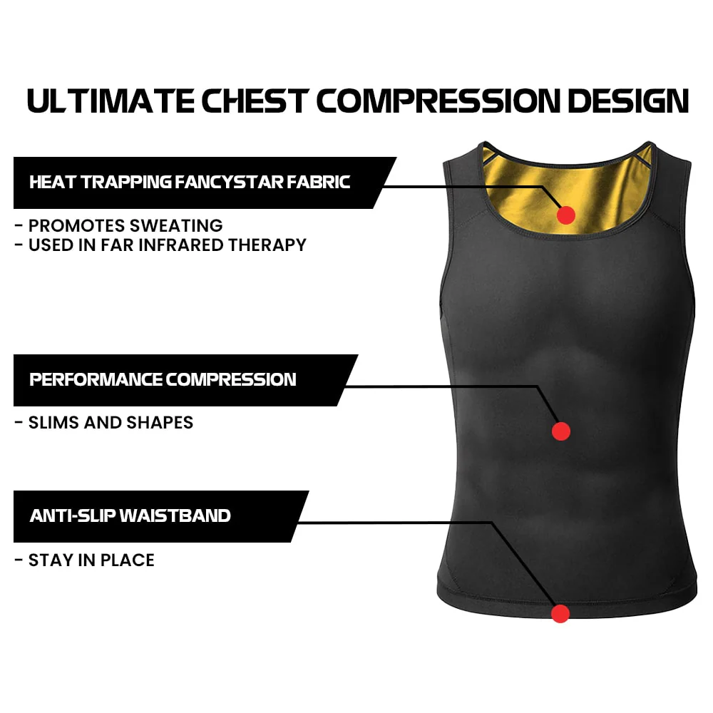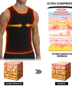 Unlike traditional compression shirts, this fancystar tank top delivers a slimming effect that can make your upper body look more toned and defined. Made with heat-trapping polymers, the ManlyShape tank top provides multi-directional chest compression and acupressure stimulation, promoting healthy blood flow and reducing fluid buildup.